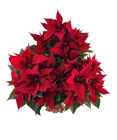 Triple your decorative spirit by giving not one, or two, send our holiday trio of 3 red multi-bloom poinsettias presented in a triangular-shaped basket basket adorned with a holiday ribbon.