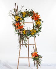 Our masculine funeral flowers feature tributes made of mixed flowers in deep red, orange, green and similar colors. These warm and vibrant arrangements are always a welcome addition to the funeral service. Order online or call us directly for personalized assistance. Express delivery available to funeral homes, cemeteries and residences in Phoenix and the Valley.